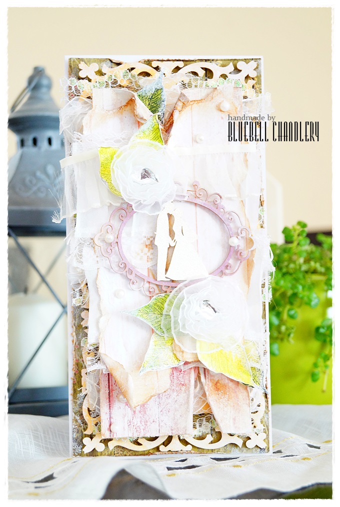 Zabrałam się więc do roboty i powstała kolejna ślubna kartka z dużą ilością koronek i warstw.
