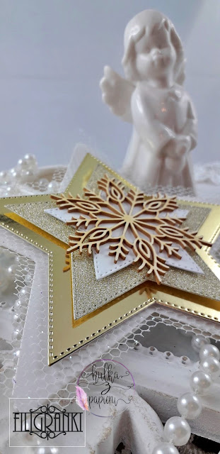 Jak wspominałam w poprzednim poście, ostatnim rzutem na taśmę wykonałam 2 kartki bożonarodzeniowe. Oto druga z nich - wykonana na bazie Filigranki w kształcie gwiazdy:)