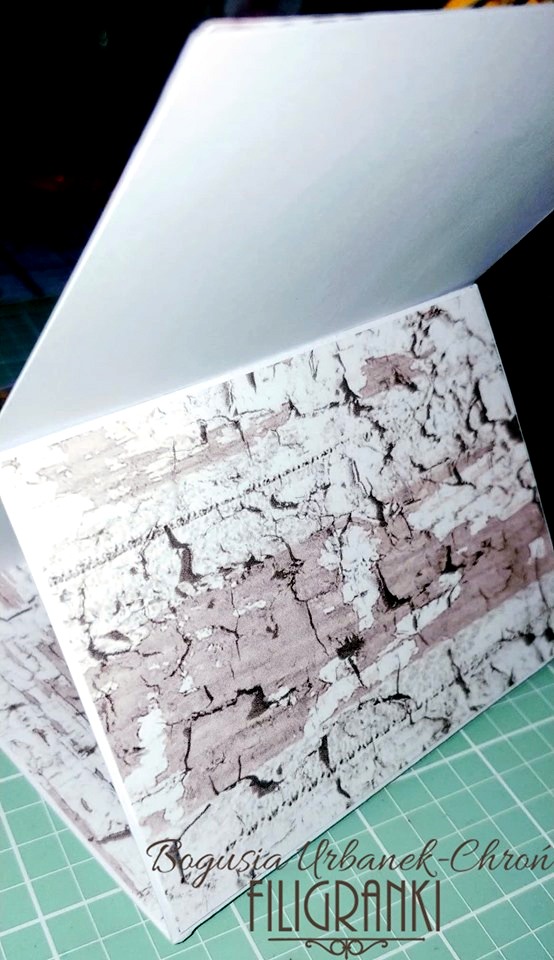 a następnie na dystansach dałam papier z tego samego arkusza którym wykleiłam środek