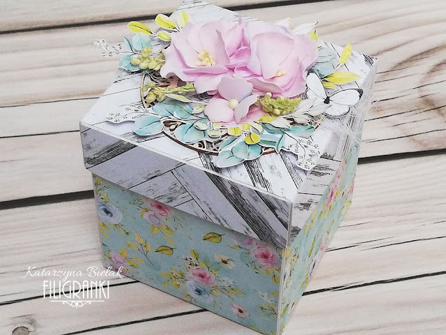 Na wieczku i w środku umieściłam także kilka kwiatków zrobionych z foamiranu.