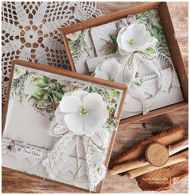Craftowe bazy ozdobiłam delikatnymi kwiatkami